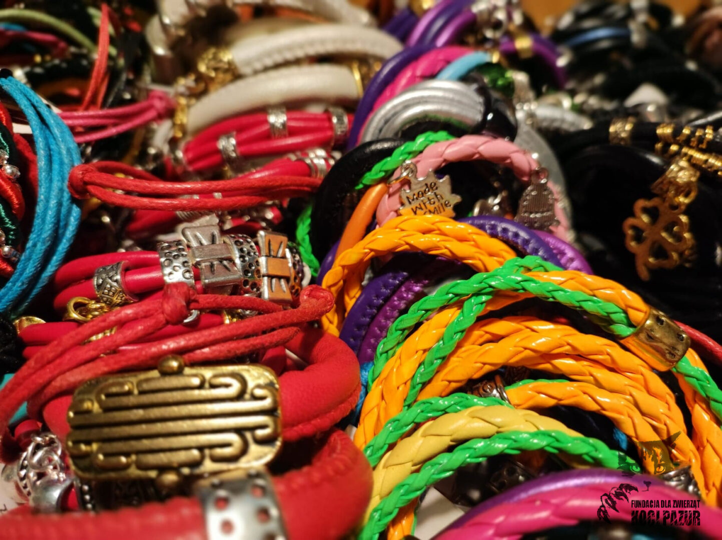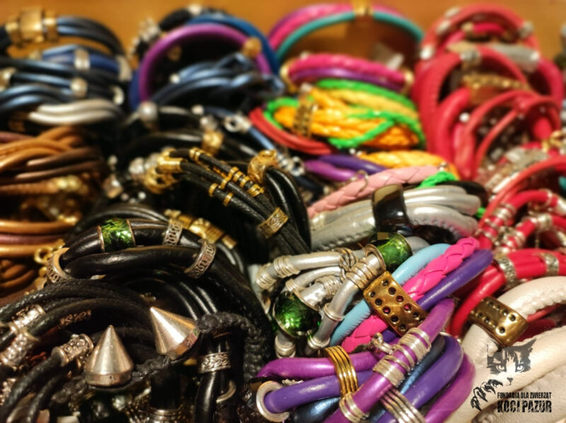 Od Darczyńcy o wielkim sercu otrzymaliśmy ręcznie robioną biżuterię (bransoletki, kolczyki, wisiorki). Z tych cudeniek nasza wolontariuszka Agnieszka przygotowała zestawy, umieszczając je w pięknych paczuszkach przewiązanych kolorową wstążką. W każdym zestawie znajduje się 1 bransoletka z ekoskóry - jej kolor oraz reszta zestawu jest zupełnie losowa