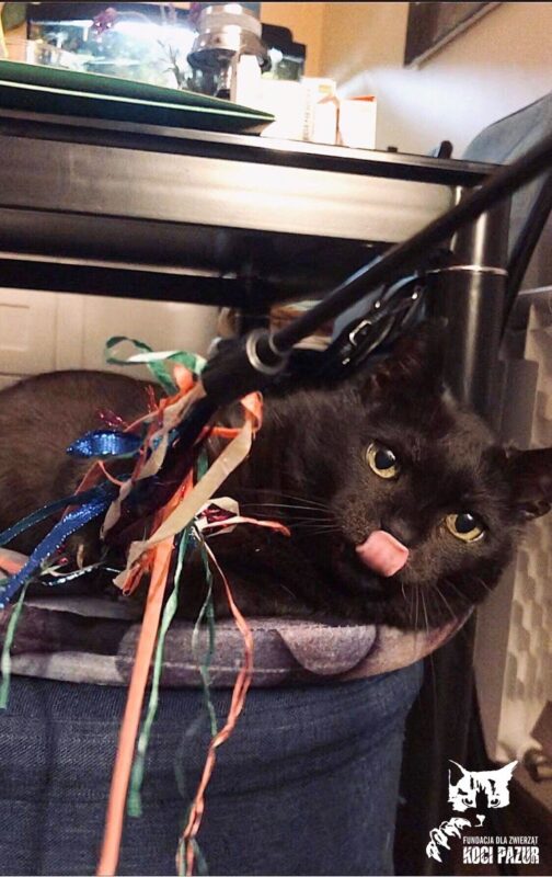 Agatka została znaleziona na poboczu drogi - najprawdopodobniej potrącił ją samochód. Z trudem wlokła za sobą tylne łapki, a z ranek na skórze wypełzały larwy much :( Kotka przeszła poważną operację miednicy oraz długą rekonwalescencję, która pozwoliła wrócić jej do zdrowia. Aktualnie nie widać, że kiedyś uległa wypadkowi; jest aktywna i chętna do zabawy.